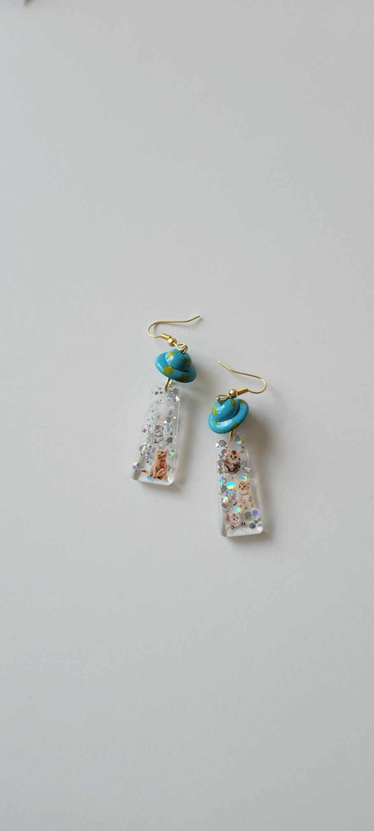 (New) Cat Abduction UFO Earrings