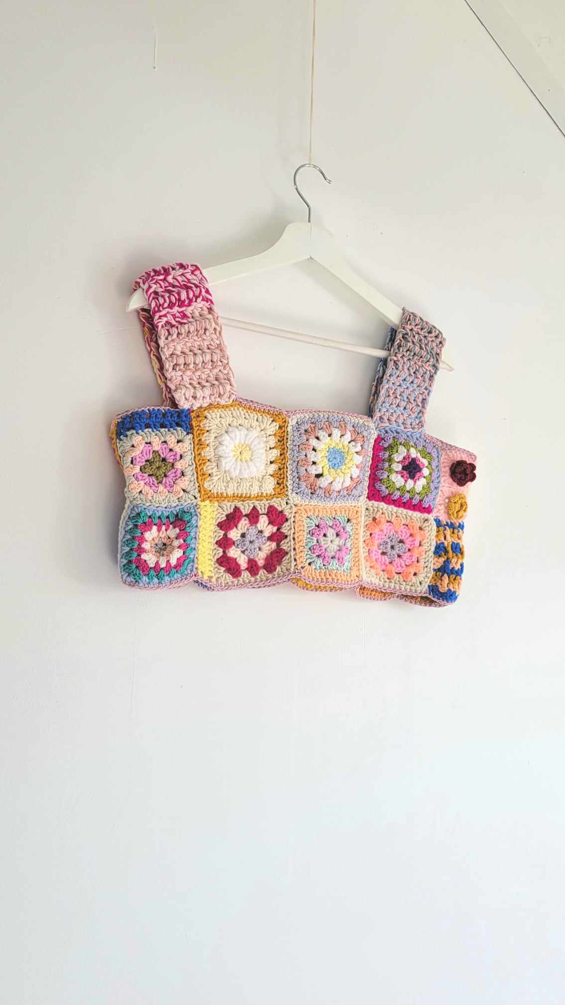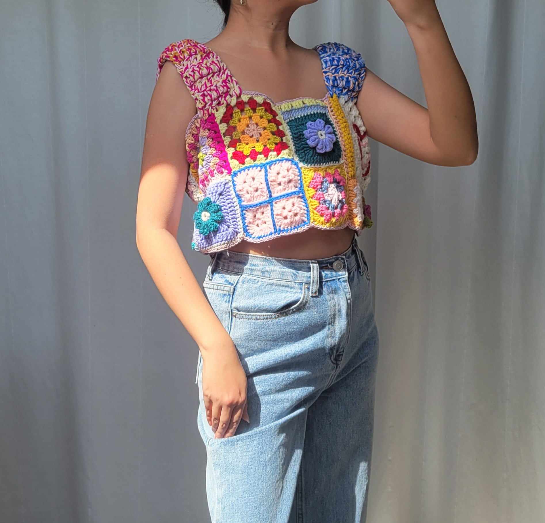 Unique design outfit / granny square vest / patchwork top / cottage core / colorful